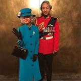 We already thought John Legend and Chrissy Teigen were royalty, but they just took their regal status to a new level with their Halloween costumes this year. On Wednesday, the "Ordinary People" singer posted a hilarious photo of him and Chrissy dressed as Queen Elizabeth II and Prince Philip. Chrissy was totally owning her monarchical style, wearing a blue coat dress and matching hat with a gray wig and black pumps. She even accessorized with a pair of black gloves, an elegant black bag, and a sparkly brooch and gave a faint, queenly wave while John looked as spiffy and princely as the Duke of Edinburgh himself.